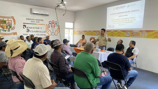 Juan R. Escudero, Gro., a 8 de noviembre de 2025. – Con el propósito de fortalecer la sanidad animal y la productividad del sector ganadero El Gobierno Municipal de Juan R. Escudero que preside el Lic. Oscar Sánchez Luna y a través de la Dirección de Desarrollo Rural y en coordinación con personal de SENASICA se impartió una plática técnica sobre la prevención y control del Gusano Barrenador del Ganado (GBG), dirigida a productores locales.