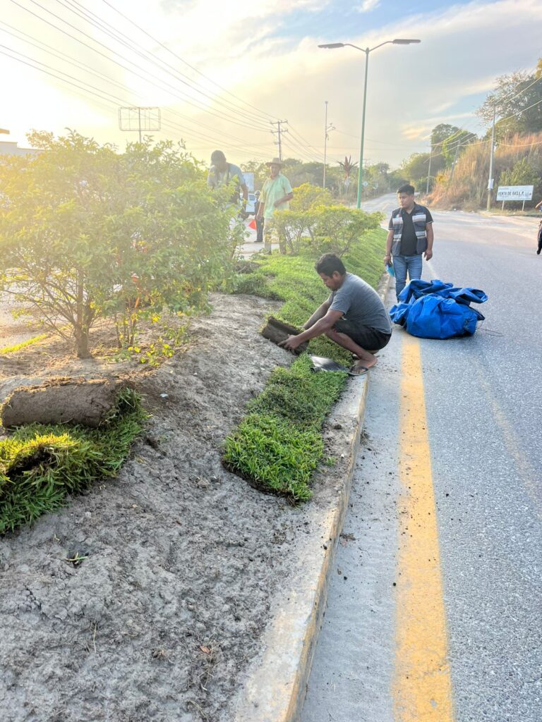 Por instrucciones del Presidente Municipal de Juan R. Escudero el Lic. Óscar Sánchez Luna, y a través de la Dirección de Ecología y Medio Ambiente, se llevó a cabo la instalación de césped y mejora de las condiciones del boulevard de Tierra Colorada.